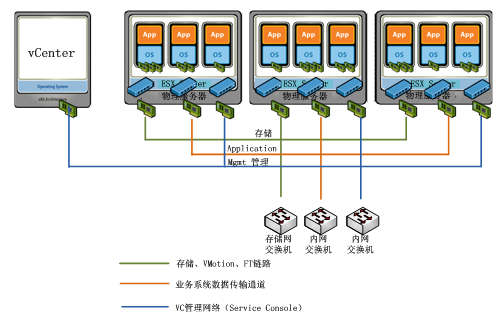 對于企業(yè)不同的應(yīng)用系統(tǒng),如果按照傳統(tǒng)方式部署,需要為每個主機準(zhǔn)備服務(wù)器硬件、網(wǎng)絡(luò)連接和存儲空間等設(shè)備。這樣的部署方式不僅耗費硬件設(shè)備和人力資源,并且每個系統(tǒng)都以單機形式運行,缺乏高可用保護(hù),生產(chǎn)連續(xù)性沒有保障。因此,金科公司使用VMware vSphere構(gòu)建虛擬化平臺,配合統(tǒng)一存儲(SAN、ipSAN、NAS),對應(yīng)用系統(tǒng)、網(wǎng)絡(luò)和存儲資源進(jìn)行整合,提高應(yīng)用系統(tǒng)可用性。另外通過vSphereDRS和DataRecovery能夠提供硬件使用率和增強數(shù)據(jù)保護(hù)能力。